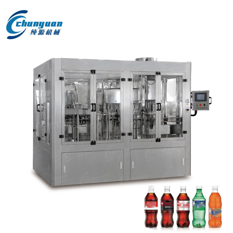 含气饮料精品麻豆视频网机械将冲洗、精品麻豆视频网、封盖三功能组合在一个机体上,全过程实现自动化,全自动碳酸饮料设备适用于精品麻豆视频网可乐、雪碧、含气饮料等含二氧化碳气体的饮料。含气饮料精品麻豆视频网生产线配有CO2压力控制精确,液位控制稳定;设有多处卡瓶、缺瓶、缺盖、过载等保护报警装置,确保出品质量。