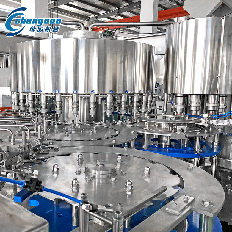 小瓶水精品麻豆视频网设备设计科学合理,外形美观,功能齐全,操作维修方便,自动化程度高。小瓶水设备采用PLC电脑程序控制及人机界面触摸按钮(电气可根据客户需求设计安装),具有料缸内页面自动控制,无瓶不罐装,无瓶不加盖等功能,采用变频器无级调速,生产能力数字显示,调整极其方便。